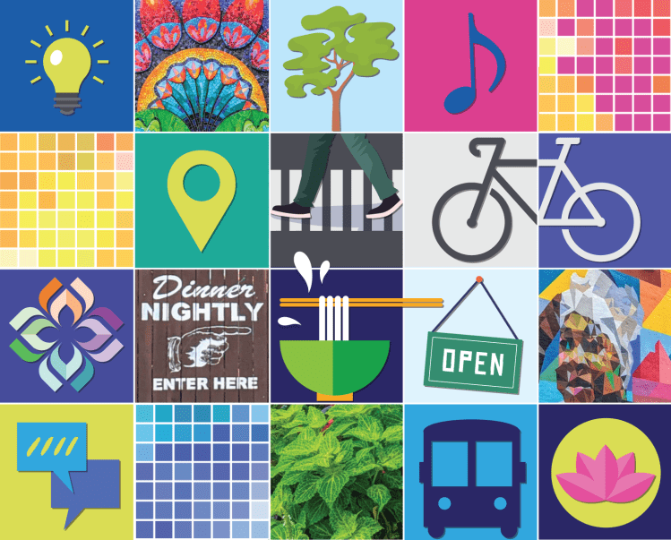 Placemaking ingredients add up! Things like bumpouts, murals, planters, benches, community events… they come together to create an environment we see, feel and experience. Further, they have the ability to reflect, respond and cater to local life, help businesses thrive, and share a story of community character all their own.