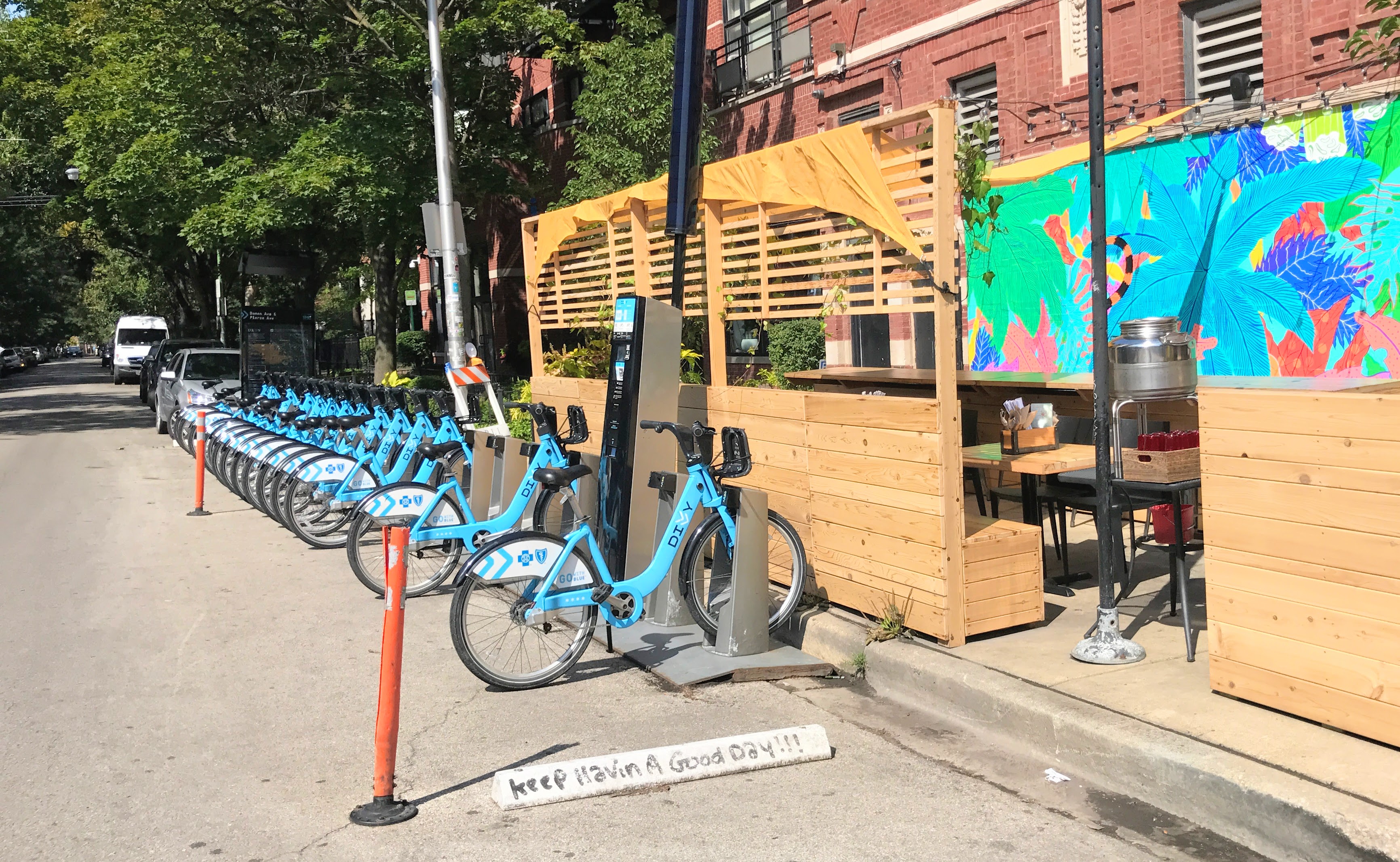 Did You Know: As highlighted by the images below, a parklet provides more space for seating, dining, community events, bike parking, and more! They temporarily reclaim street parking to create a more pedestrian-friendly environment, boost foot traffic, and help make drivers more mindful of speed limits. The Chicago Department of Transportation has a dedicated program called ‘Make Way For People‘ to help install more parklets in Chicago. The upcoming “Placemaking on Devon” Poll will explore parklet amenities to understand those features you favor most!