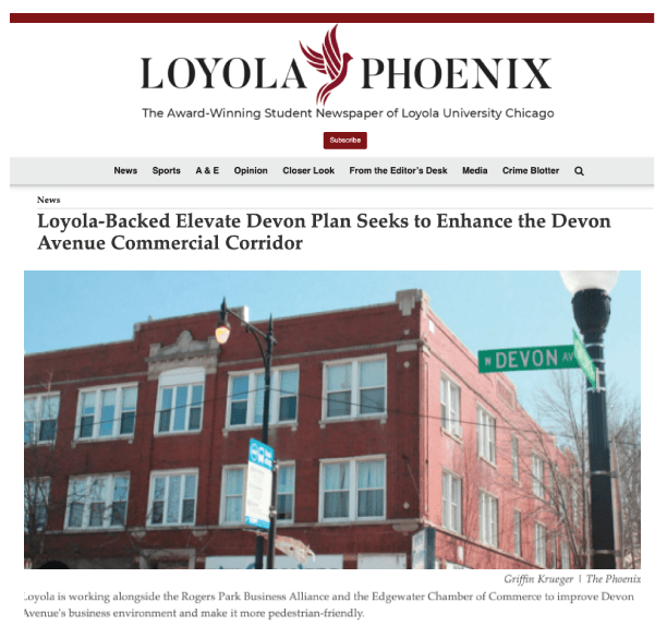 Elevate Devon is a pivotal corridor study focused on enhancing Devon Avenue between Sheridan Road and Ravenswood Avenue in Chicago. The Edgewater Chamber of Commerce, Rogers Park Business Alliance, and Loyola University Chicago joined forces and funding to seek community input as part of this process.