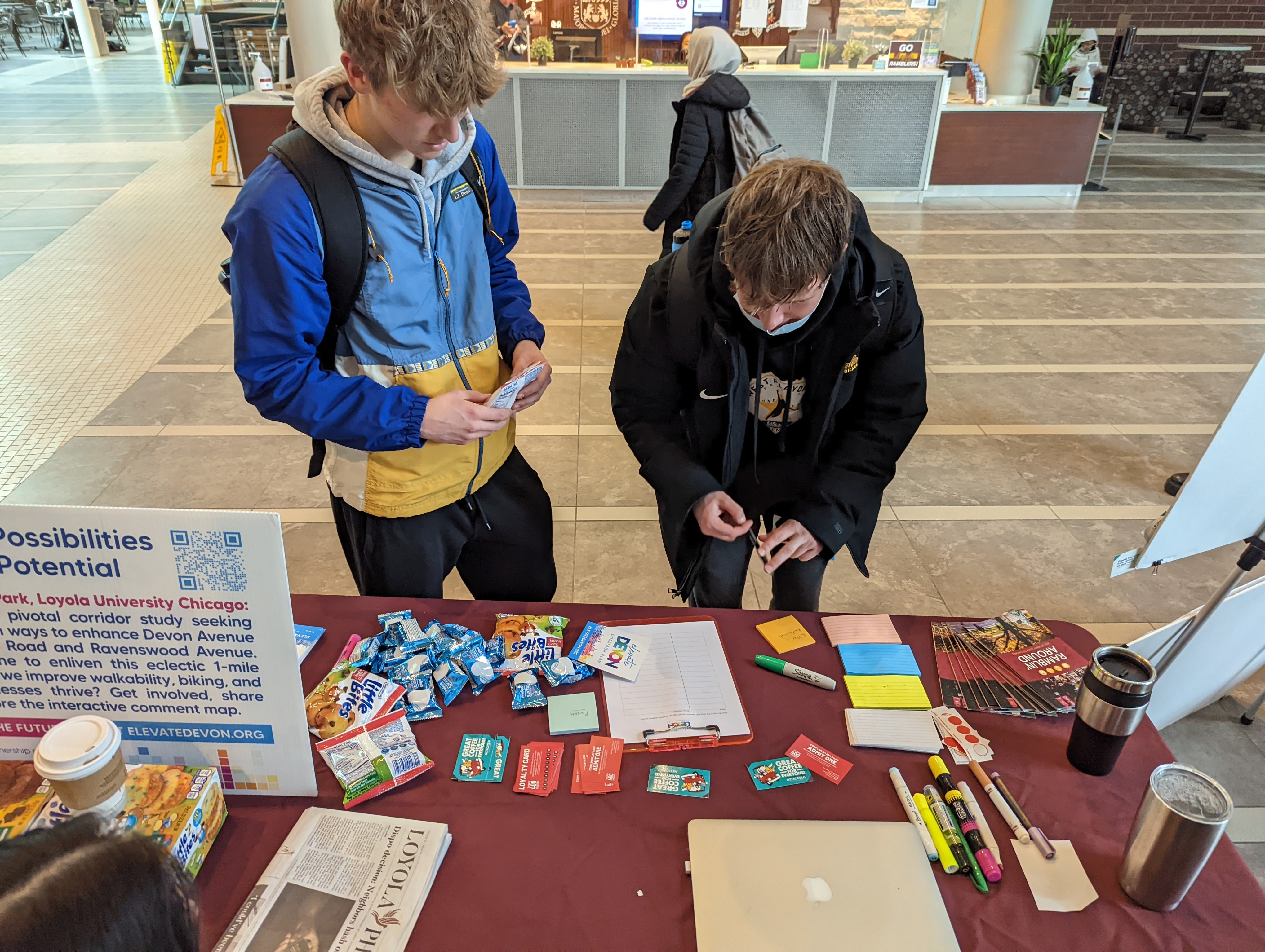Our team is working hard to engage the diverse users and neighbors of Devon Avenue, and we are planning in-person pop ups along the corridor as the weather warms up and the sun comes out. Tentatively planned for the last week in March, weather pending, these pop ups are meant to start dynamic conversations with Devon Avenue passerby; Loyola students, faculty, and staff; residents; and business owners.