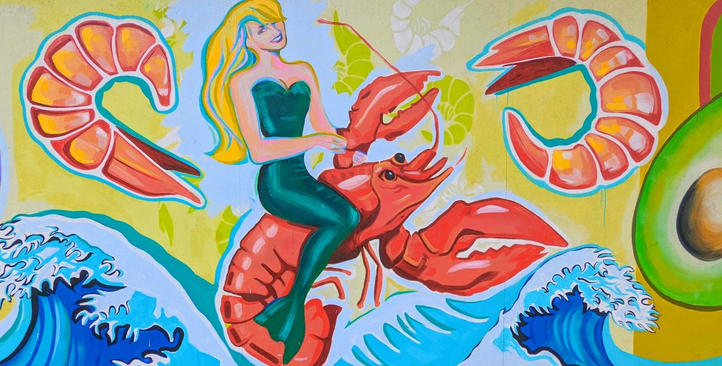 Fun Fact: According to a 2021 Chicago Reader Article, the mural on the side of Devon Market, which includes a blonde mermaid riding a shrimp, is in fact a depiction of market owner, Shaul Basa’s wife… and we are here for it! Check out the mural and say hello tomorrow.