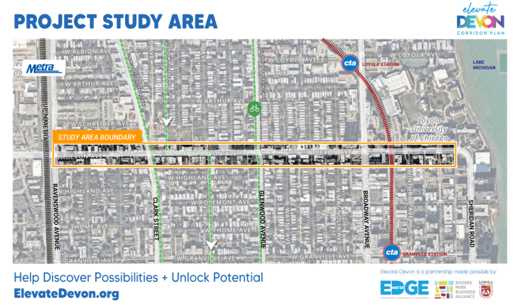 Elevate Devon is a pivotal corridor study focused on enhancing Devon Avenue between Sheridan Road and Ravenswood Avenue in Chicago. What can be done to enliven this eclectic 1-mile stretch, foster sense of place, and help local businesses thrive? Explore this site and share your ideas via the interactive map and poll. Help shape the future of Devon!